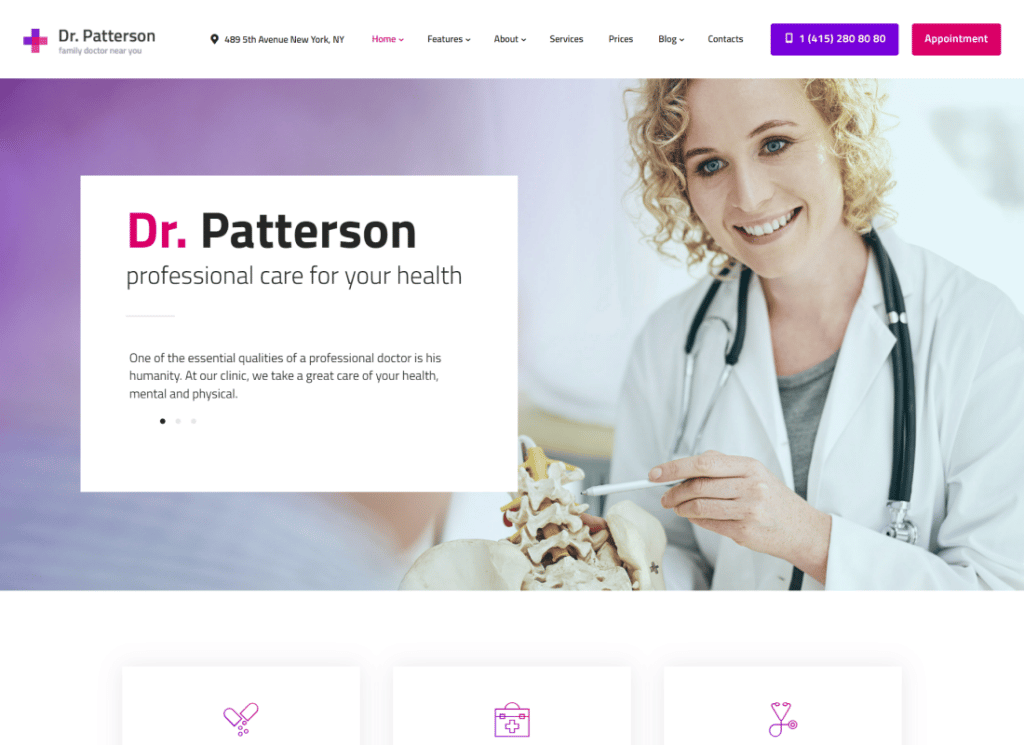 Dr.Patterson ist ein ultimativ schönes medizinisches Allzweck-WordPress-Thema, das für moderne Krankenhäuser, Kliniken und Dienstleistungen im Bereich der zeitgenössischen Medizin entwickelt wurde. Es bietet 6 vorgefertigte Homepages, Online-Terminbuchung, Terminverwaltung, Online-Zeitplan, erweiterte Kontaktformulare und vorgefertigte Module für Klinik- und Arzteinzelseiten, Preise und Dienstleistungen. Das Thema ist mit WPBakery Page Builder (Visual Composer) kompatibel und eignet sich für eine Vielzahl von medizinischen Dienstleistungen wie Kosmetik, Dermatologie, Chirurgie, photodynamische Therapie, Körperkonturierung, Kryotherapie, Hautchirurgie, Laserbehandlung, medizinische Wiederherstellung und Verjüngung. Dr.Patterson ist ein benutzerfreundliches, modernes, reaktionsschnelles und 100 % Retina-fähiges WordPress-Design, das Ihre Dienstleistungen dank integrierter Beitragstypen (Dienstleistungen, Testimonials, Teammitglieder usw.) auf die effektivste Weise präsentiert. Kompatibilität mit beliebten Plugins wie Slider Revolution, WP Bakery Page Builder, Booked Appointments und vielen mehr. Es wird Ihnen helfen, eine einzigartige und professionell aussehende Website zu erstellen, die Ihre Dienstleistungen präsentiert und es Patienten leicht macht, Termine zu vereinbaren.