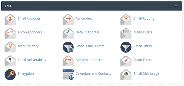 Eine professionelle Funktion von cPanel ist, dass Sie ein benutzerdefiniertes E-Mail-Konto mit dem Domainnamen Ihrer Website erstellen können. Sie müssen sich also nicht auf herkömmliche E-Mail-Konten wie Gmail und Yahoo verlassen.