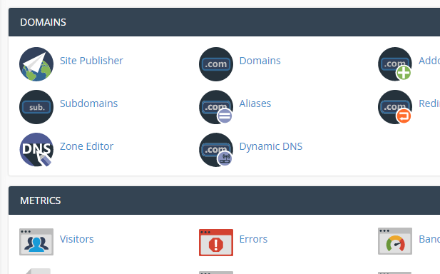 - Addon-Domains – Sie können zusätzliche Domains erstellen, die Sie für andere Websites verwenden.