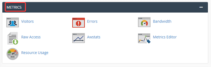 Die letzte erwähnenswerte Sache über cPanel ist der Abschnitt „ Metriken “. Dieser Abschnitt gibt Ihnen einen Einblick in alle Daten und Statistiken zu Ihrer Website, einschließlich Ihres Serverstatus, der Anzahl der Besucher und des allgemeinen Zustands der Website.
