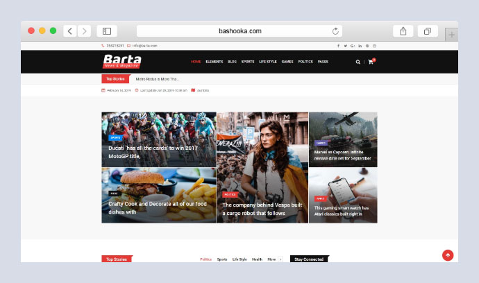 Este es un tema de WordPress limpio y moderno. Esto también es adecuado para sitios web relacionados con blogs. Barta se basa en el último marco Bootstrap 4 y Elementor Page Builder. Barta viene con la opción Lazy Load predeterminada para la imagen.