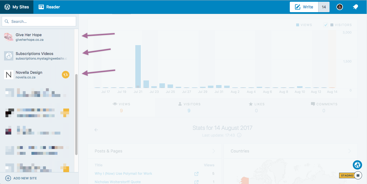 Especialmente, si planea ejecutar un contrato de mantenimiento con sus clientes, sería conveniente instalar también un complemento, por ejemplo, Jetpack, que le brinda una descripción general rápida de cada una de las diferentes tiendas que administra.