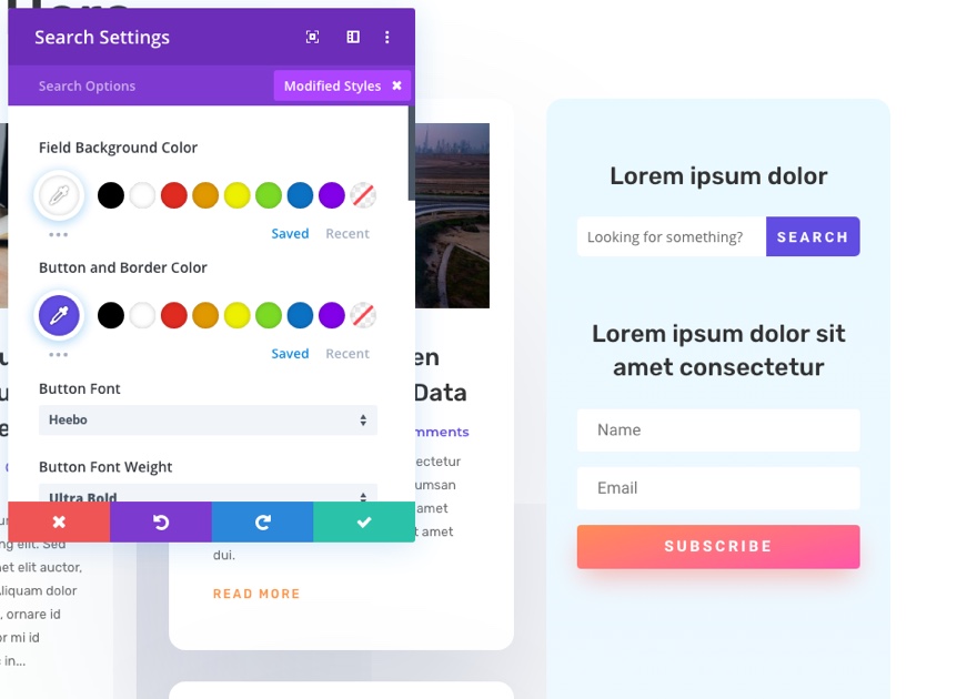 Luego, puede diseñar esos elementos utilizando la configuración incorporada de Divi para que coincida con el diseño de la plantilla.