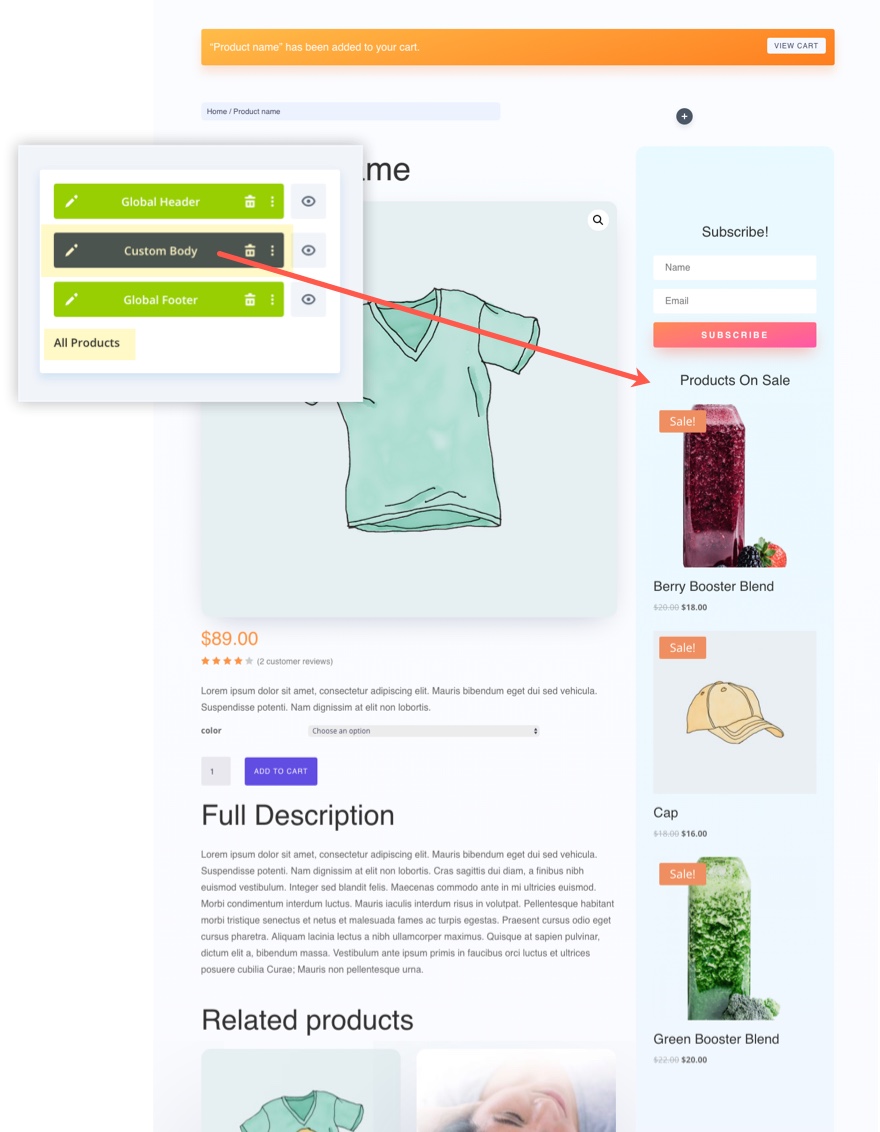 Luego, cree una barra lateral con contenido específicamente relacionado con su tienda para la plantilla "Todos los productos".
