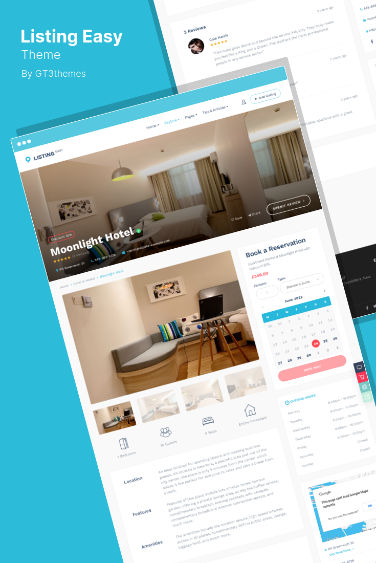 Listable es un tema de WordPress para la gestión de directorios y listados diseñado específicamente para sitios web de reservas, hoteles, mercados, bienes raíces y alquileres.