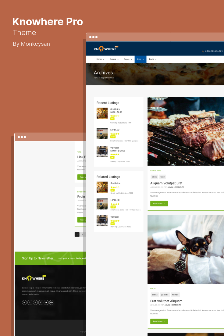 Knowhere Pro es un tema multipropósito de WordPress sobre Classified Directory que es adecuado para portales de ciudades, portales de empleo, multipropósito, guías de viaje y sitios web similares.