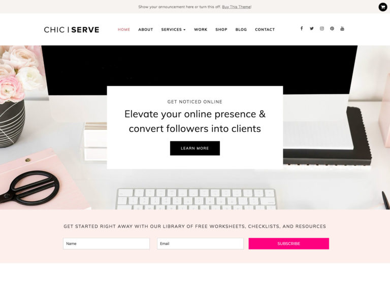ChicServe es un tema de WordPress dirigido a sitios web femeninos. Está diseñado pensando en las mujeres proveedoras de servicios y ofrece un marco elegante y flexible con el que construir un sitio. Se integra con Elementor, que puede modificar los elementos de diseño de su sitio arrastrando y soltando, lo que significa que no tiene que entender la codificación para personalizarlo.