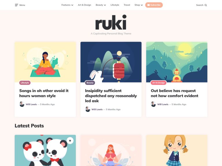 Ruki es un tema de blog personal que encaja muy bien en esta colección de plantillas femeninas.