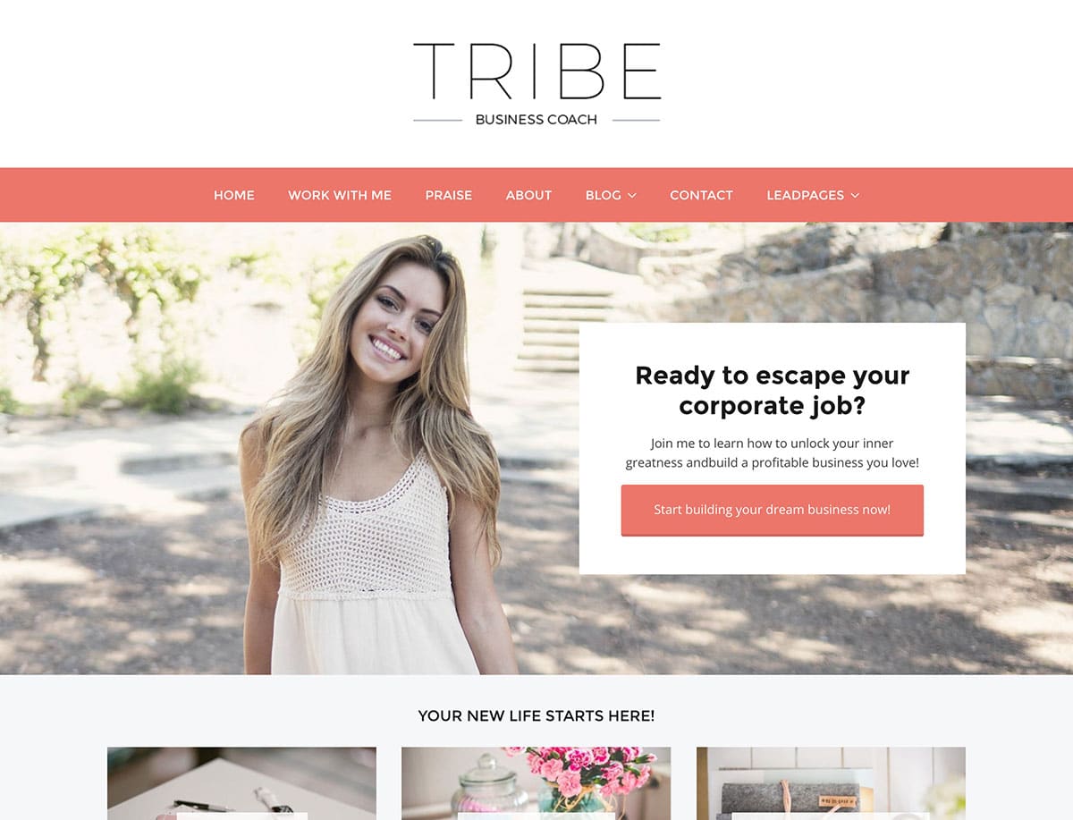 El tema Tribe es un hermoso tema diseñado pensando en las entrenadoras. El objetivo principal del tema es ayudarlo a capturar más clientes potenciales a través de su diseño elegante y estratégico. El tema le permite promocionar sus servicios sin esfuerzo, así como vender sus programas y libros electrónicos. Gracias a la integración con WooCommerce, puede agregar fácilmente una tienda en línea a su sitio web y comenzar a aceptar pagos. El tema también viene con algunas áreas diferentes que fueron diseñadas para insertar opciones de correo electrónico y promocionar sus regalos para ayudarlo a construir su lista. Aproveche la poderosa página de blog para compartir su conocimiento y establecer su autoridad y generar credibilidad con testimonios.