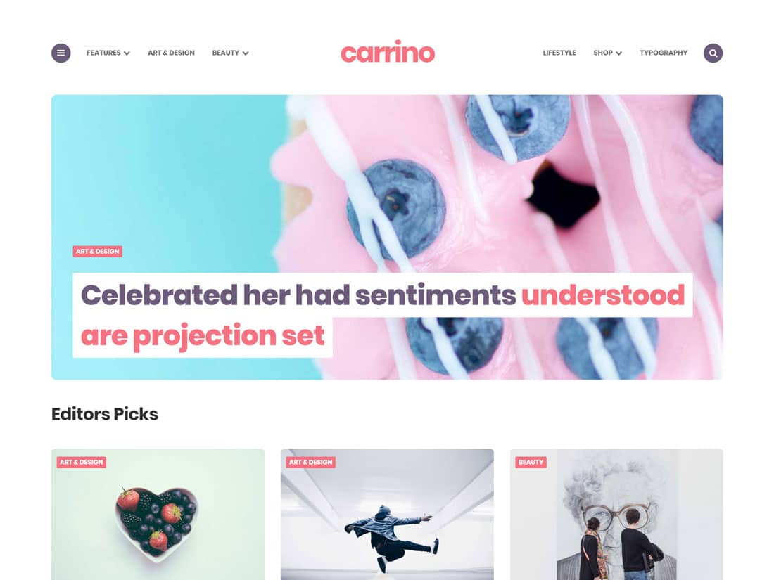Carrino es un hermoso y moderno tema para blogs creado pensando en el nuevo editor, Gutenberg. El tema le permite crear hermosos diseños para las publicaciones de su blog y presentar su escritura de una manera visualmente atractiva. La página de inicio hace un excelente uso del diseño de cuadrícula para que sus lectores puedan encontrar fácilmente una categoría que les interese o leer las últimas publicaciones del blog. Puede combinar fácilmente los diseños usando el Personalizador de WordPress.