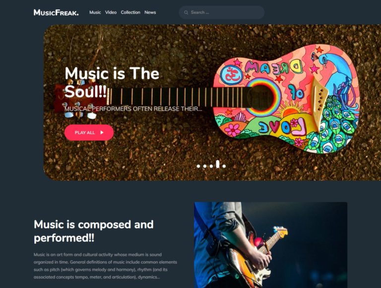 El tema de WordPress Music Freak ofrece un diseño simple pero elegante que se adapta a las necesidades de artistas solistas, bandas, DJ, promotores y realmente cualquier otra persona asociada con la industria de la música.