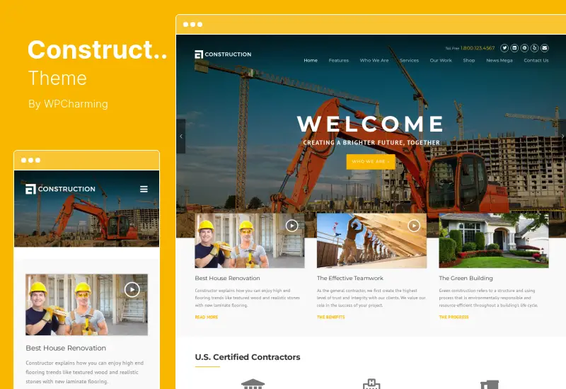 Le permite diseñar fácilmente su sitio web de la forma que desee. Está específicamente diseñado para empresas constructoras y empresas que venden servicios de construcción.