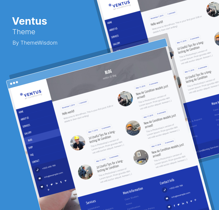 El tema FreshAir está impulsado por un equipo de élite de autores que se especializan en diseñar soluciones para empresas que brindan servicios de aire acondicionado y calefacción.