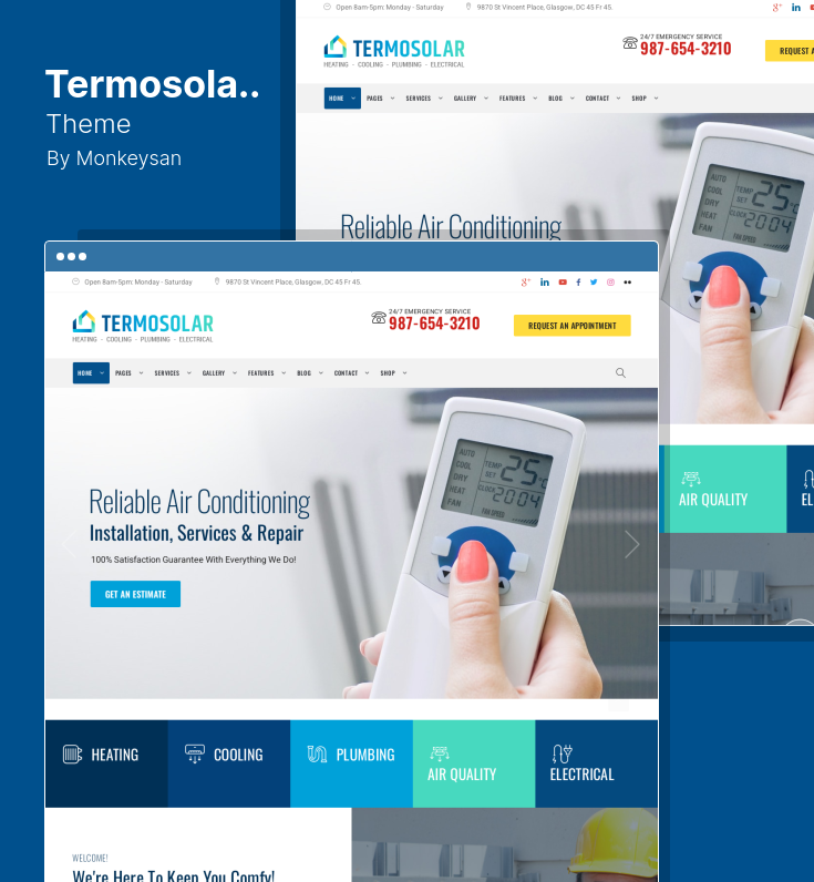 Además, este tema HVAC es beneficioso para las empresas de suministro de agua, plomeros, servicios de limpieza, empresas eléctricas y de energía, instaladores de sistemas solares y personal de mantenimiento.