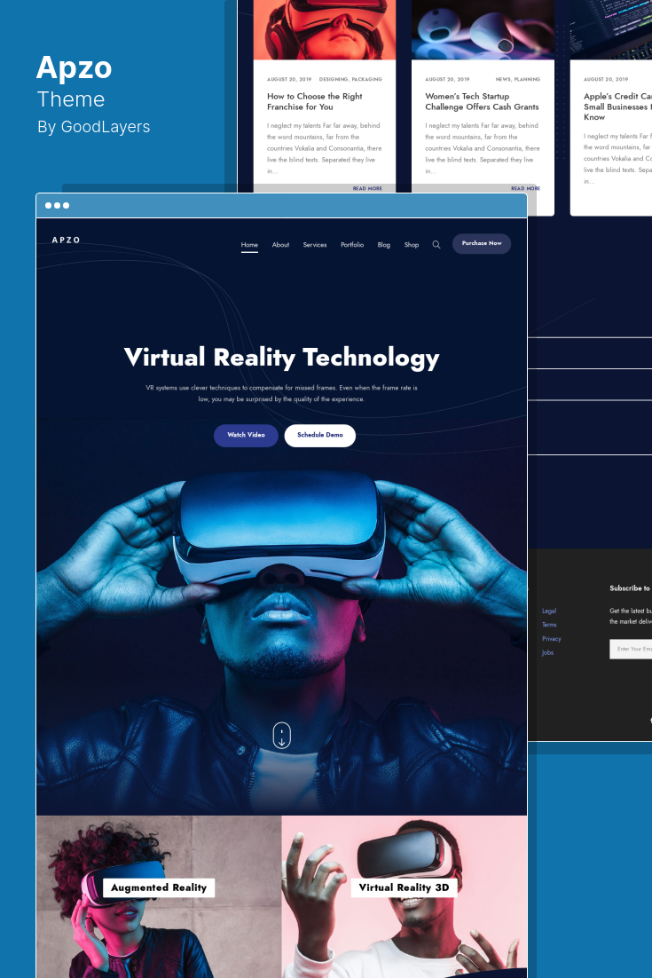 Apzo es una plantilla premium de WordPress con capacidad de respuesta impulsada por el creador de páginas GoodLayers, especialmente diseñada para empresas de software, software como servicio, alojamiento, sitios web comerciales y páginas de inicio de aplicaciones.
