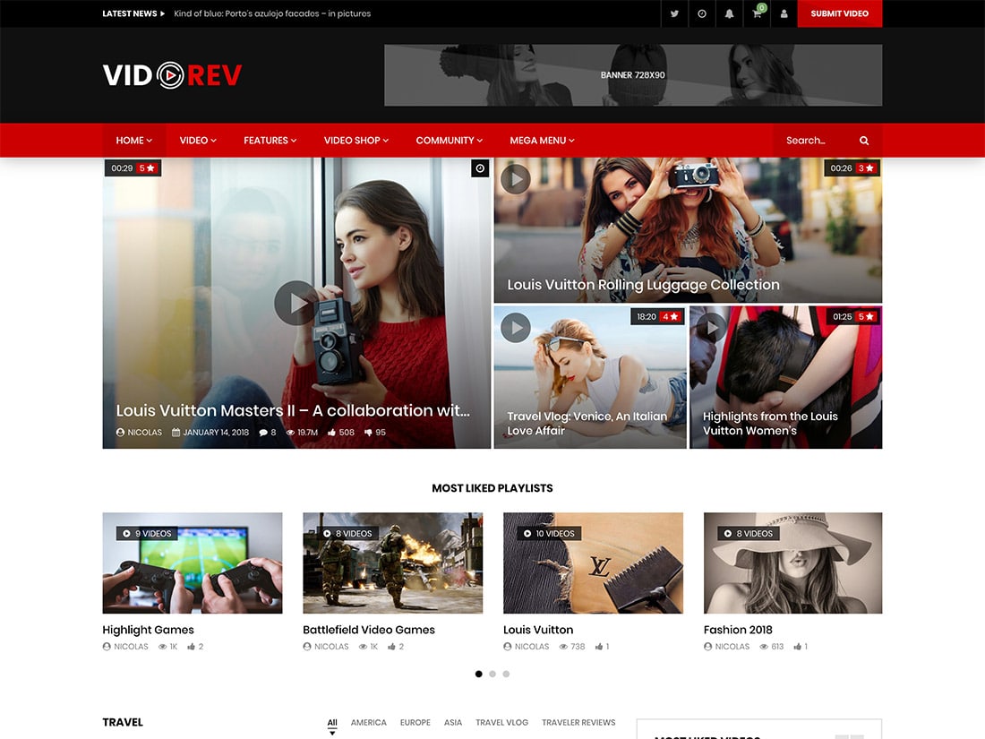 VidoRev es otro tema de video de WordPress multipropósito moderno con mucho contenido de demostración.