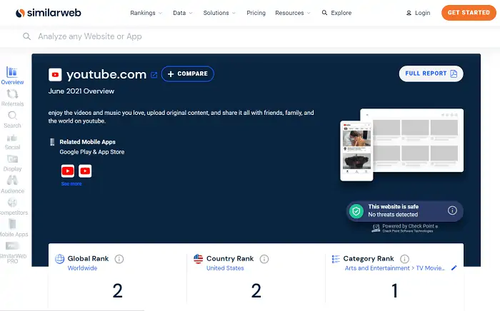 Similarweb es un nombre popular para el análisis de sitios web y aplicaciones. Puede recopilar información en cualquier sitio o aplicación móvil para comprender su contenido y estrategias de SEO.