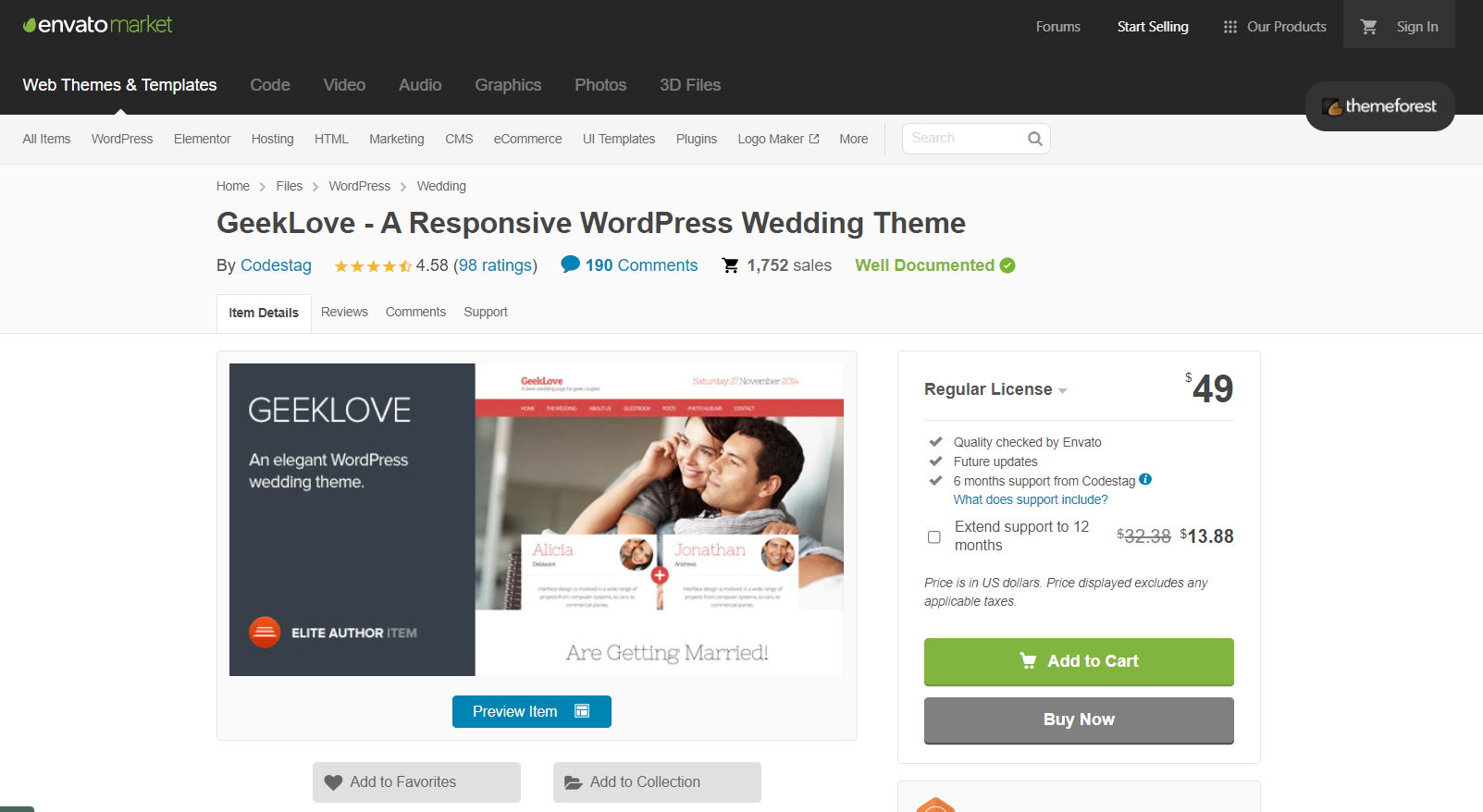 GeekLove tiene un diseño increíble y mucha funcionalidad enfocada en las ceremonias de boda. Además de su diseño minimalista y receptivo que funciona en pantallas retina, también obtiene características ricas como eventos de boda, formulario RSVP, libro de visitas y mucho más. El tema se actualizó y no está listo para Gutenberg, lo que simplifica aún más las personalizaciones.