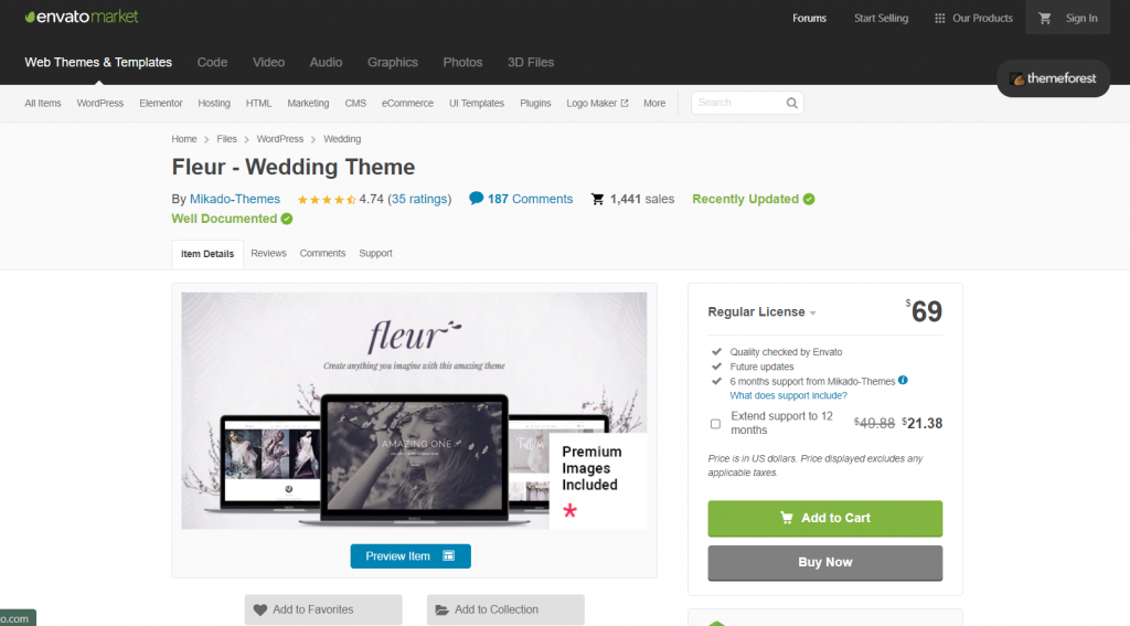 Este maravilloso tema de WordPress para bodas de Mikado Themes es muy fácil de usar y se ve realmente elegante. Incluso el nombre del tema suena elegante. Con Fleur, puede crear un hermoso sitio web para su día especial sin problemas. El tema viene con 13 demostraciones de página de inicio separadas que son total y fácilmente personalizables.