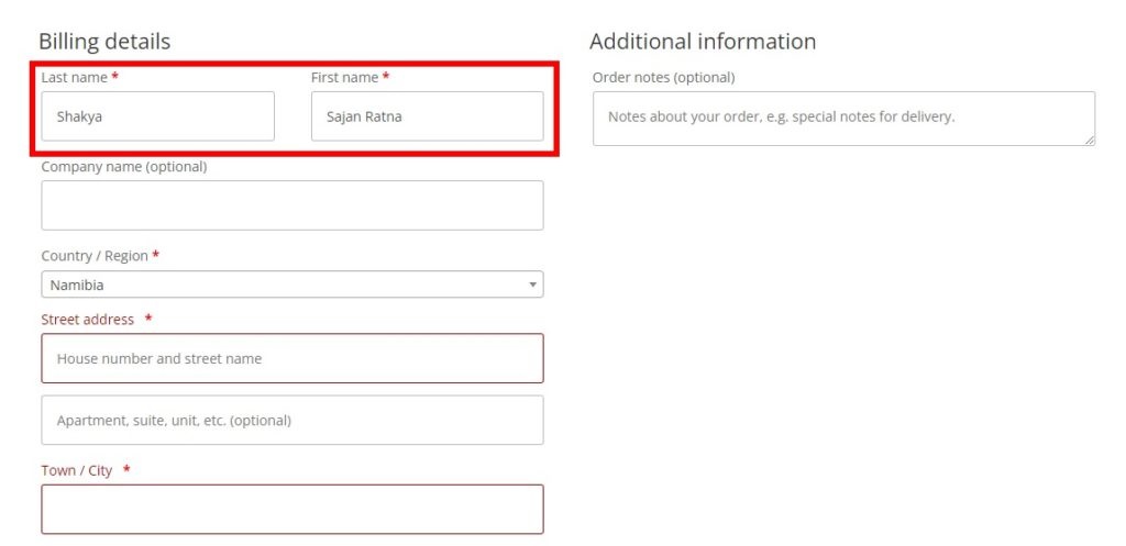 Dado que está personalizando la página de pago de WooCommerce cuando cambia el botón de realizar el pedido, también puede reordenar los campos de pago. Usar los campos correctos con el orden correcto siempre es una gran conveniencia para sus clientes durante el proceso de pago. Entonces, como beneficio adicional, también le mostraremos cómo hacerlo.