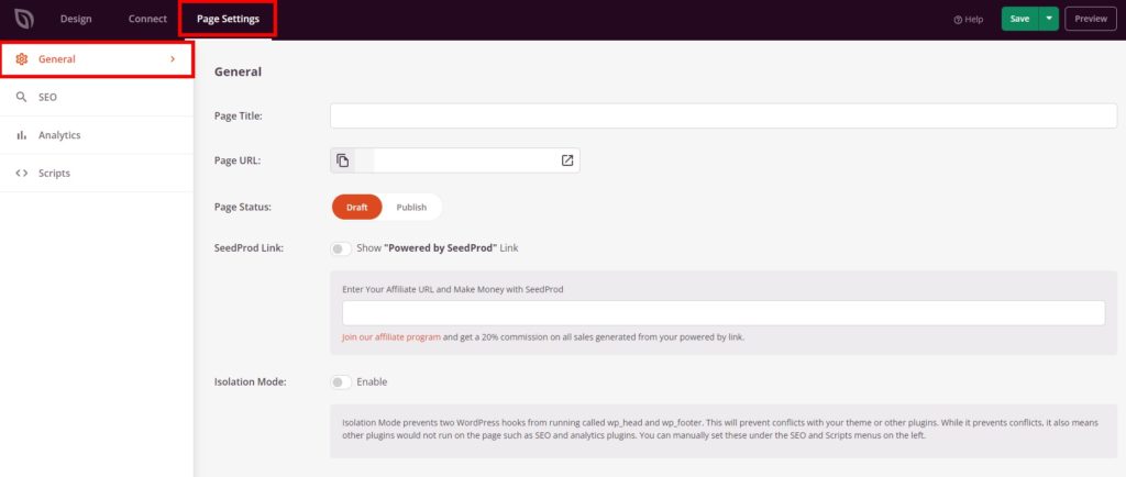 También tiene la opción de poner su próxima página en modo Aislamiento. Si esto está activado, otros complementos como SEO y páginas de análisis no funcionarán en la página próximamente.