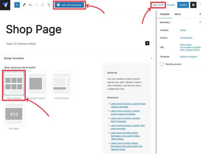 Para ayudarlo a lograr esto sin código, puede usar la función Templates Builder en Botiga Pro para personalizar la página de la tienda usando el editor de bloques nativo de WordPress o Elementor (incluso la versión gratuita).