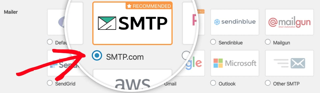Luego, en Mailer , seleccione un proveedor de servicios. Puedes elegir entre un montón de opciones: