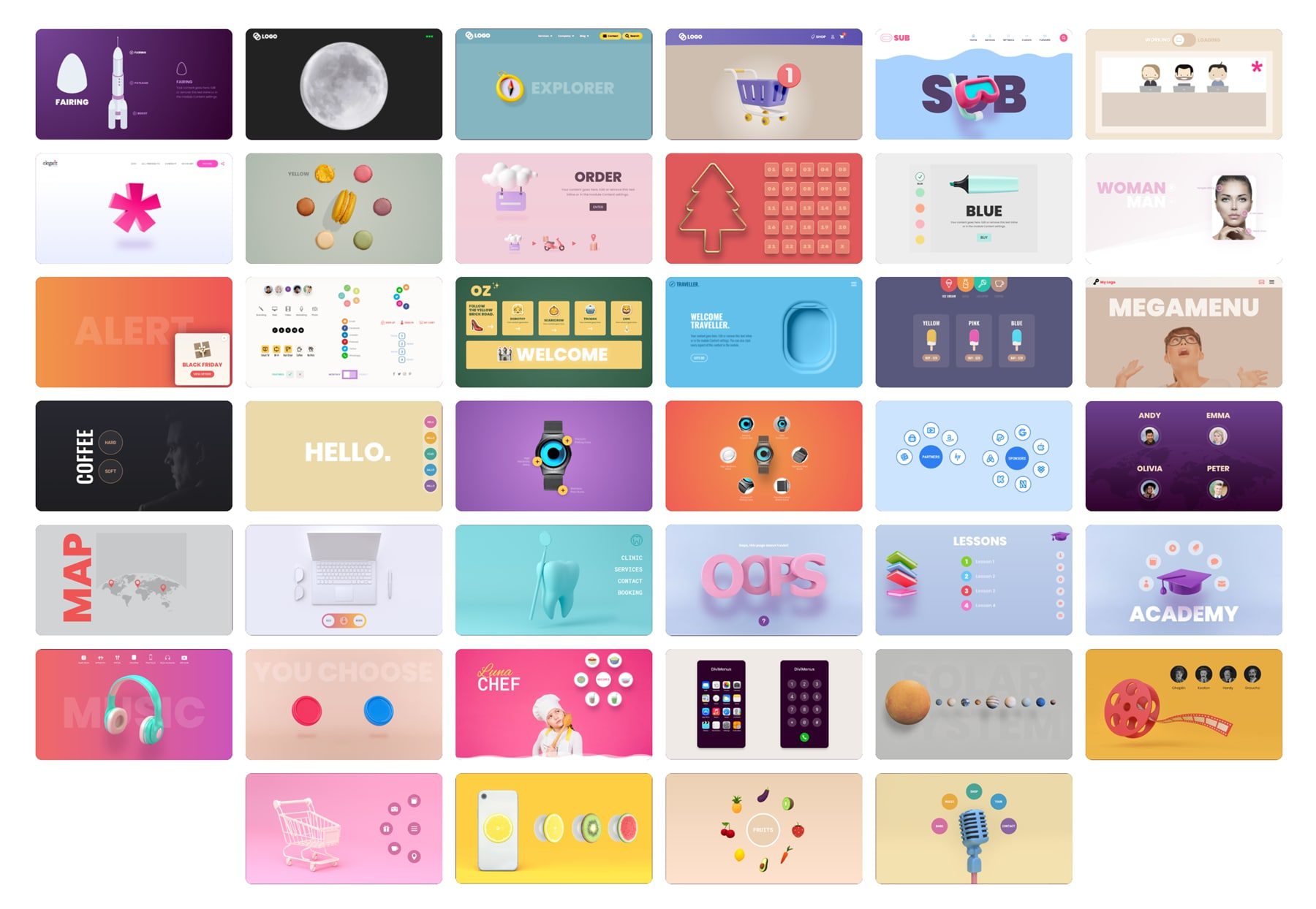 DiviMenus también viene con un montón de diseños gratuitos que puedes usar al registrarte. Echemos un vistazo a algunos ejemplos.
