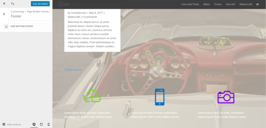 Al seleccionar Ocultar pie de página inferior, se desactiva el pie de página original. En este ejemplo, no diseñé el módulo para que adopte el estilo que lo rodea. Aquí se coloca sobre la imagen de fondo.