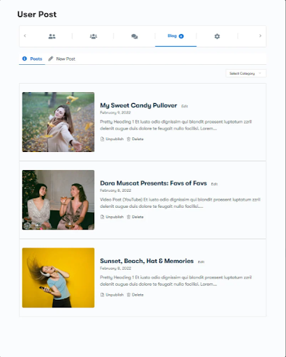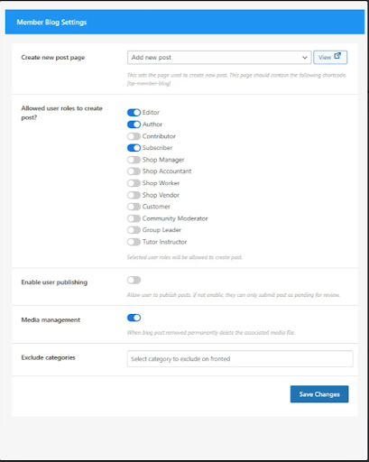 Obtenga un control completo para permitir y administrar la publicación de blogs front-end para los miembros de la comunidad. Los miembros obtendrán una excelente opción cuando hagan clic en la opción de edición, lo que les dará más control sobre su escritura. Pueden incluir imágenes destacadas, categorías y etiquetas en sus publicaciones.