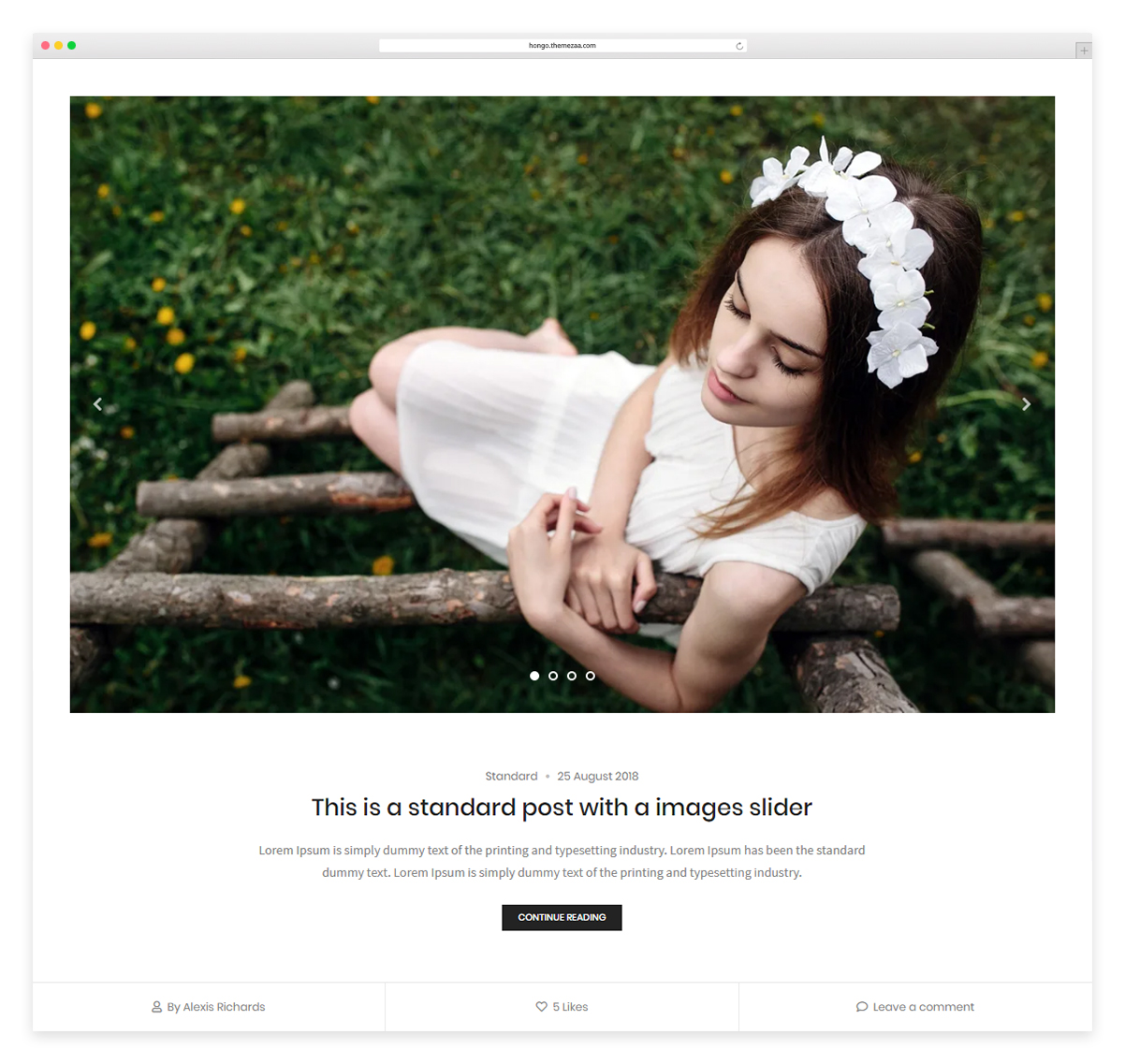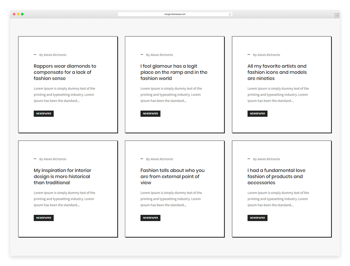 Además de las diferentes demostraciones de tiendas de comercio electrónico, Hongo viene con muchas otras plantillas y diseños útiles. Un ejemplo de esto es la selección de plantillas de publicaciones de blog.