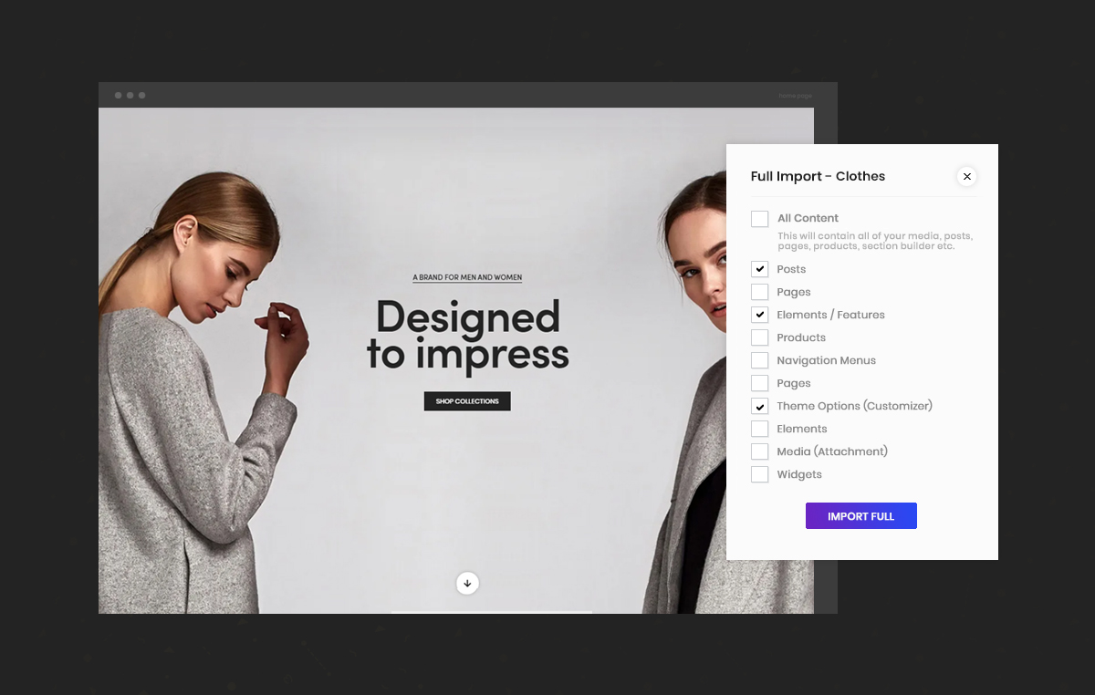 La importación de demostración con un clic es otro punto importante a considerar cuando elige un tema de WordPress integrado en WooCommerce. Te ahorra tiempo. La importación de demostración con un clic es una de las características más importantes y útiles. Configurará su sitio sin problemas, ya que admite la importación de datos de demostración completos o datos de demostración individuales, como contenido, widgets y configuraciones de temas con un solo clic.
