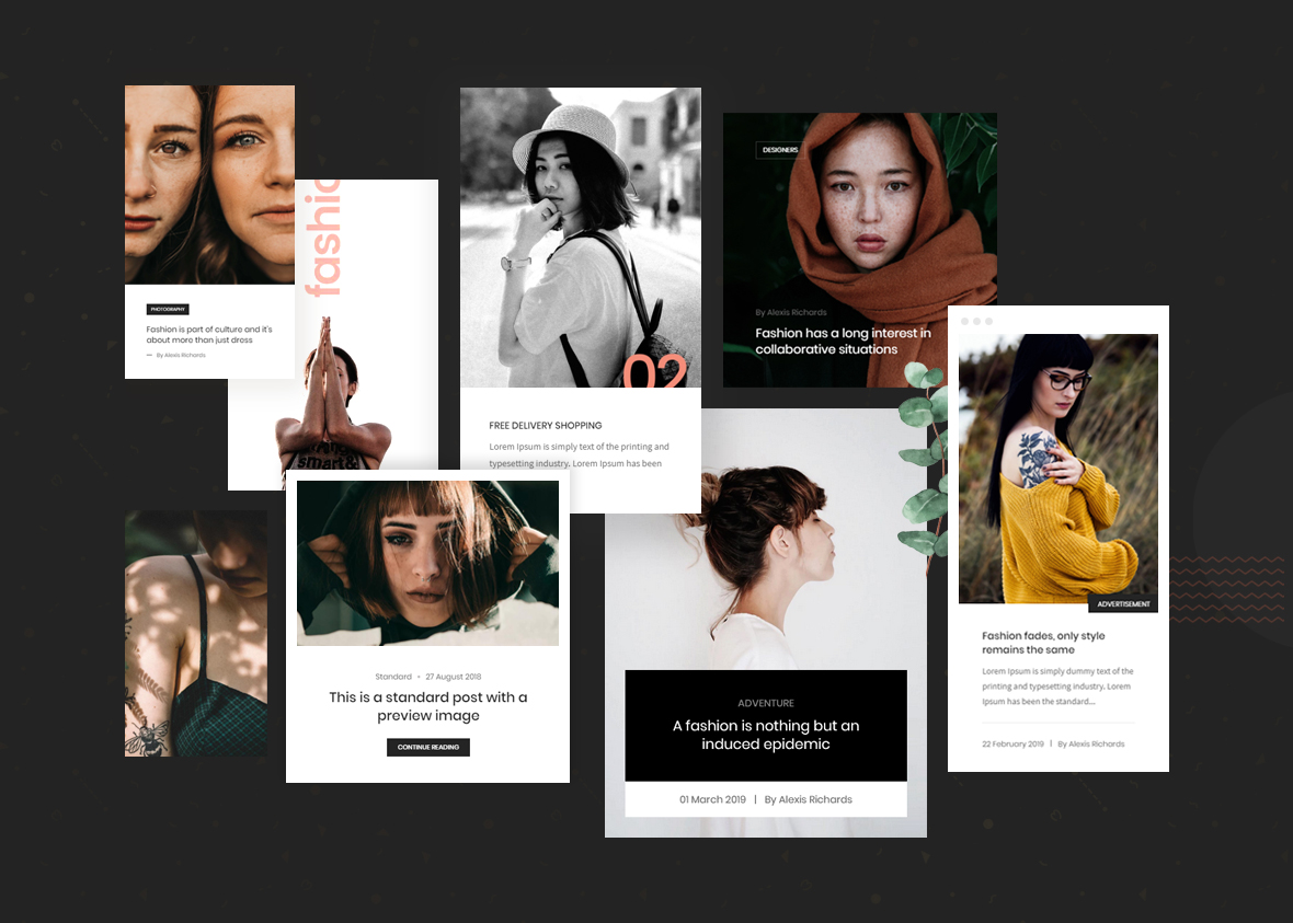 No solo hay muchos diseños para las publicaciones individuales en su blog, sino que también hay muchas plantillas para mostrar varias publicaciones de blog en una página. Estas plantillas de archivo se ven muy bien y seguramente le darán a tu blog una apariencia profesional. Algunos ejemplos incluyen el diseño de mampostería, otros tipos de cuadrículas y la opción de solo texto, por nombrar solo algunos.