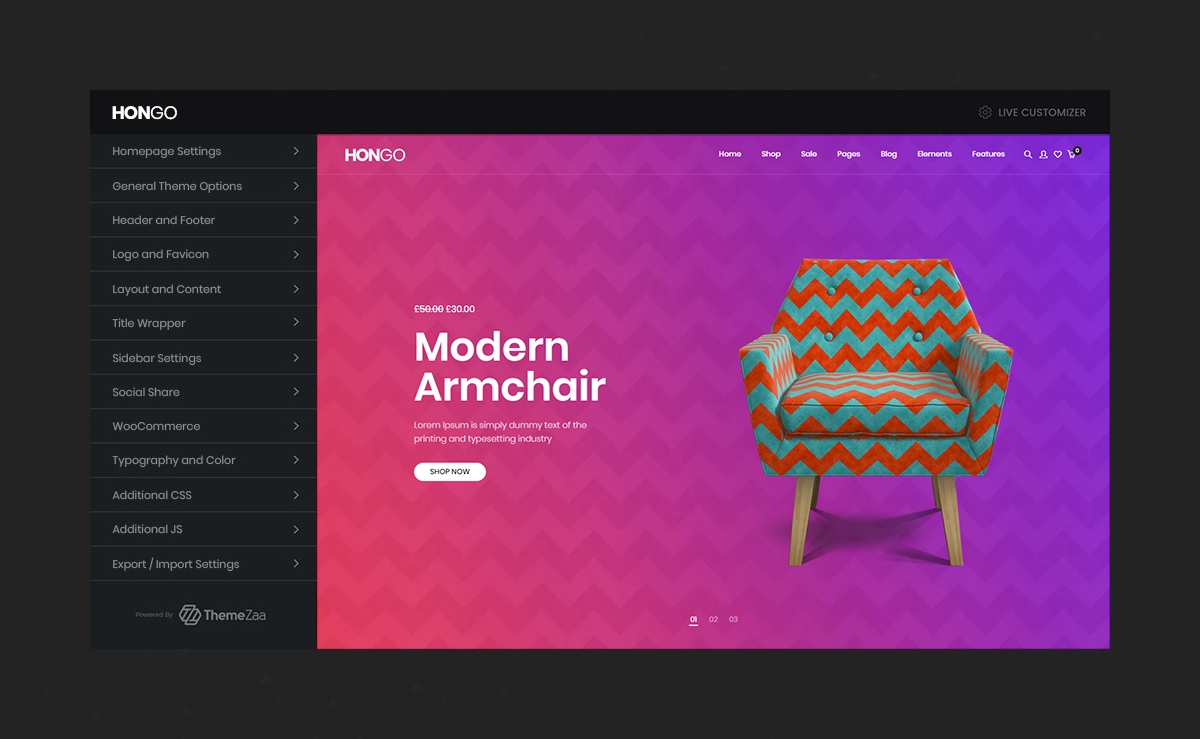 Por lo tanto, al importar datos de demostración del tema, puede obtener una forma fácil y rápida de personalizar el tema. Una vez que haya importado todos los datos de demostración, le resultará muy fácil agregar contenido personalizado propio. Todo esto se puede hacer con un solo clic que también con la ayuda de la función de importación de demostración con un solo clic del tema Hongo.