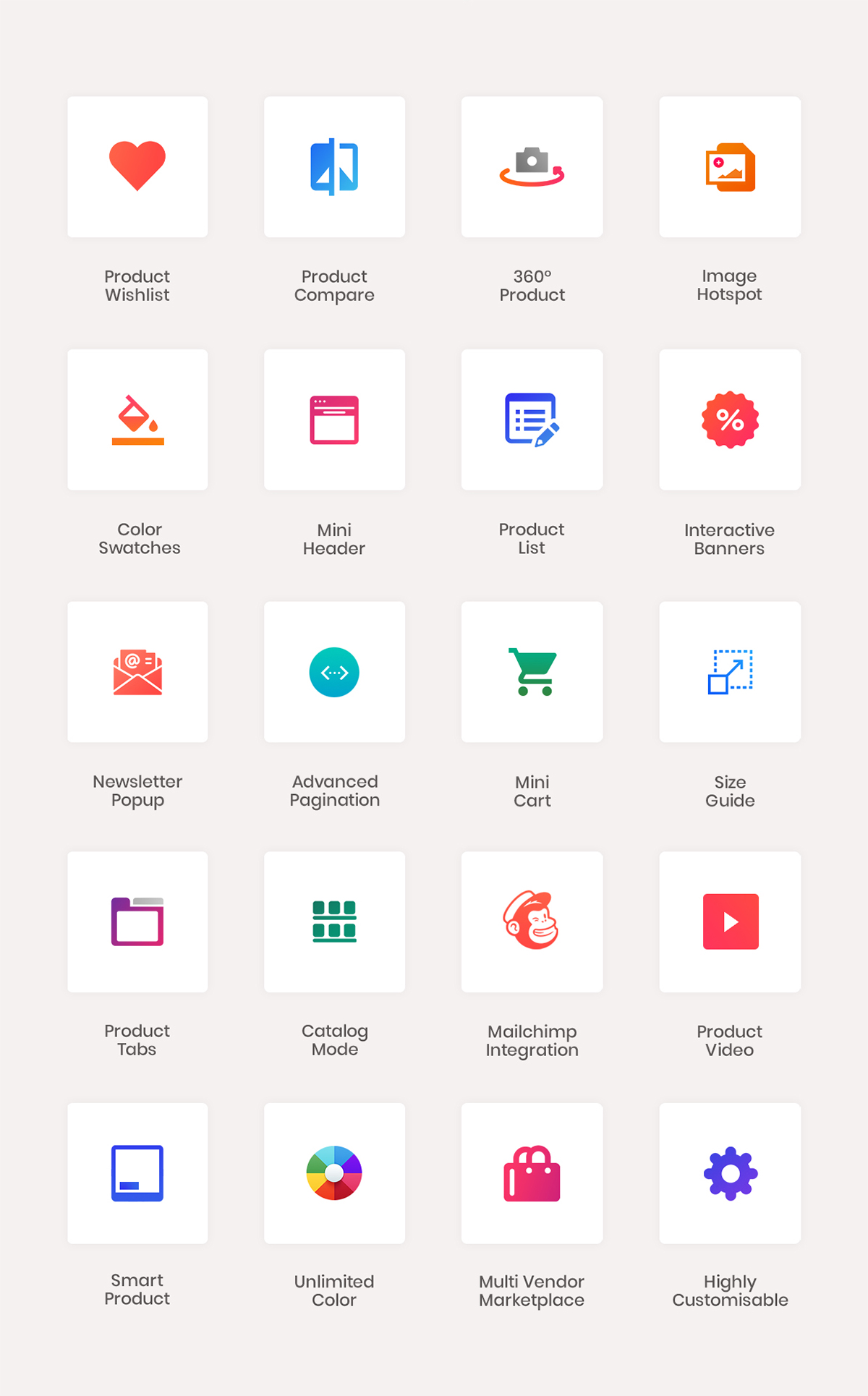 Además de las plantillas de comercio electrónico, Hongo tiene muchas funciones útiles de comercio electrónico para ayudar a mejorar su tienda. Los cubriremos con más profundidad más adelante en esta revisión de Hongo. Sin embargo, algunos ejemplos incluyen un potente filtrado de productos, vistas rápidas de productos y soporte de múltiples proveedores para crear mercados. La lista de deseos y la funcionalidad de comparación de productos son otras características de este tema que ayudarán a darle a su tienda un aspecto profesional.