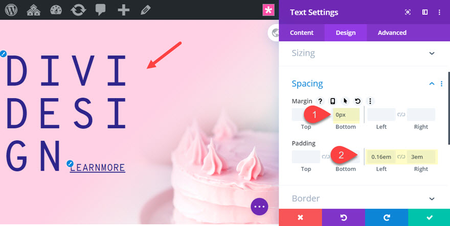 Después de eso, guarde la configuración. Luego, use las opciones de estilo en línea para cambiar el color de las letras como hicimos en el primer ejemplo de diseño anteriormente en la publicación.