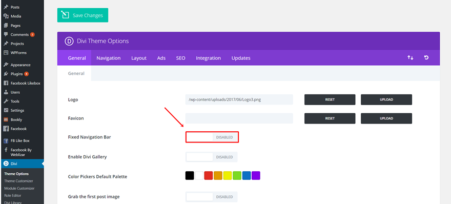 Otra cosa que hace el blog de Medium es mantener su barra de navegación en la parte superior de la página. De esa manera, los visitantes no serán interrumpidos innecesariamente cuando estén leyendo. Para deshabilitar la barra de navegación fija en su sitio web Divi, vaya a su panel de WordPress> Divi> Opciones de tema> Configuración general> Deshabilitar la barra de navegación fija.