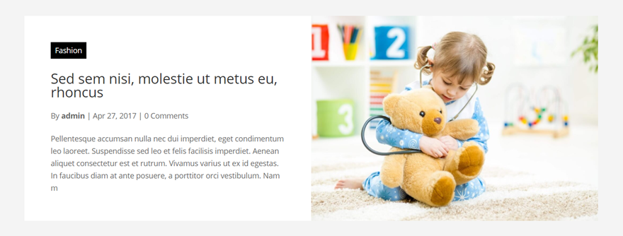 Otro complemento que creó un diseño de módulo de blog atractivo es el módulo de blog personalizado Divi. Este se parece más a las publicaciones del blog Medium que el anterior al tener la imagen destacada colocada en el lado izquierdo.