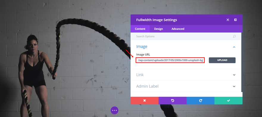 La primera imagen de ancho completo que agregaremos es una representación de la imagen destacada. Agregue una sección de ancho completo, coloque un módulo de imagen de ancho completo en ella y cargue una imagen en la pestaña Contenido. Es tan simple como eso.
