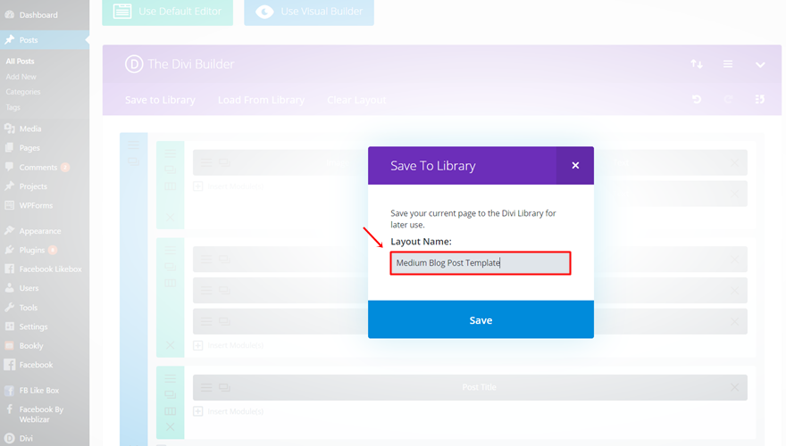 Puede reutilizar las diferentes secciones para que se ajusten a la publicación de blog que está creando clonándolas y cambiando el contenido. Una vez que haya hecho eso, puede guardar la plantilla de publicación de blog haciendo clic en 'Guardar en la biblioteca' y dándole un nombre.
