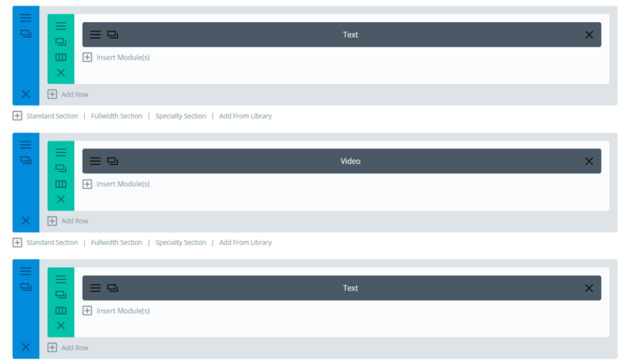 Lo último que puede aportar un valor añadido a tu entrada de blog es la integración de un vídeo. Para hacer esto, debes clonar la sección realizada anteriormente con el Módulo de texto y dividir el contenido total que tienes entre los dos módulos de texto. Justo entre las dos secciones, agregaremos otra sección con una fila de ancho completo. En esa fila de ancho completo, agregaremos un módulo de video.