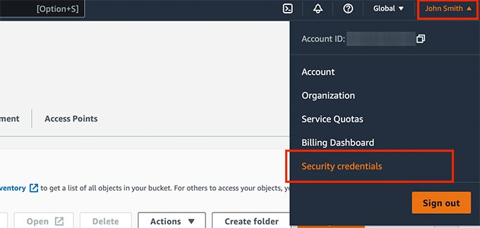 Una vez que haya subido archivos de video a AWS, no serán visibles públicamente. Para hacer eso, primero deberá generar credenciales de seguridad.