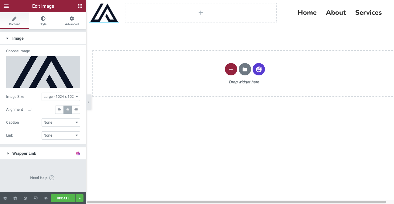 - A continuación, puede agregar un logotipo al encabezado utilizando un widget adecuado de Elementor Penal.