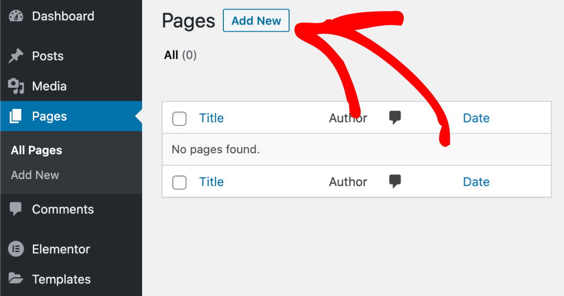 Para crear un formulario de contacto con Elementor, primero navegue hasta su panel de WordPress. Haga clic en Páginas en la barra lateral y luego en Agregar nuevo .