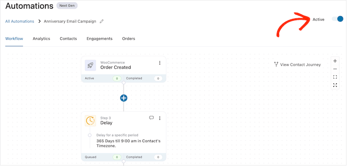 Paso 1. Cree una automatización de correo electrónico de aniversario para WooCommerce
