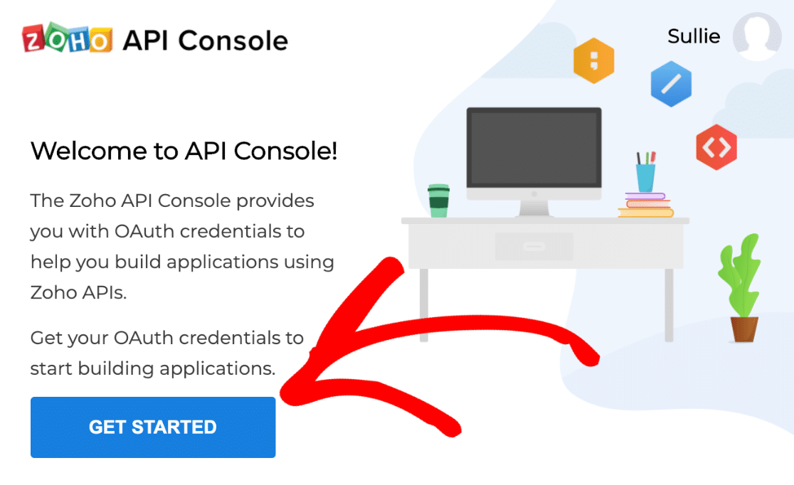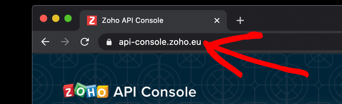 Comience abriendo la consola de la API de Zoho en una nueva pestaña. Es posible que también deba iniciar sesión en Zoho.