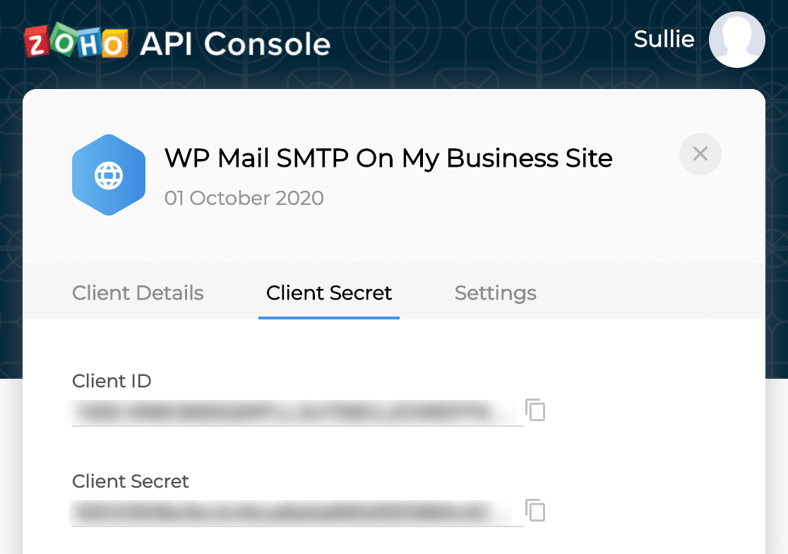 En esta pantalla, copie el ID de cliente . Vuelva a la pestaña SMTP de WP Mail y péguela en el campo correspondiente.