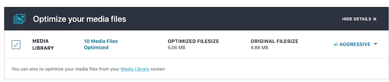 En nuestra auditoría, ahorramos hasta un 50 % del tamaño del archivo con un solo clic , usando Imagify: