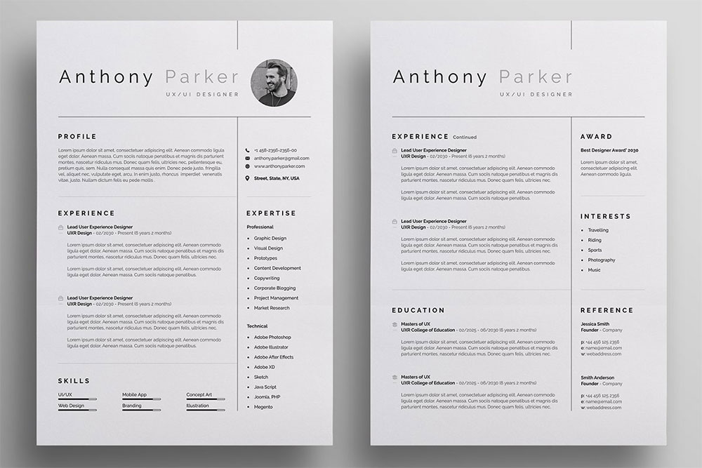 Si está buscando un trabajo que se adapte a sus capacidades, habilidades y personalidad, debe buscar con diligencia y elaborar bien su currículum. Mientras tanto, la elaboración de un currículum requiere mucho tiempo. Sin embargo, puede omitir esa carga cuando tenga una plantilla de currículum para completar y le permita disfrutar de su elaboración. Aquí hay un currículum vitae / CV, una plantilla de currículum premium con un diseño limpio y profesional que es totalmente personalizable. Utiliza un tamaño de papel A4 con sangrado y un tamaño de carta de EE. UU. Con sangrado. Esta plantilla está completamente en capas y bien organizada, por lo que puede editar fácilmente los colores y el texto para satisfacer sus preferencias. Además, esta plantilla de currículum está lista para imprimir, por eso realmente le facilitaría la creación de su currículum. También está disponible en archivos de Photoshop, Adobe Illustrator y Word.