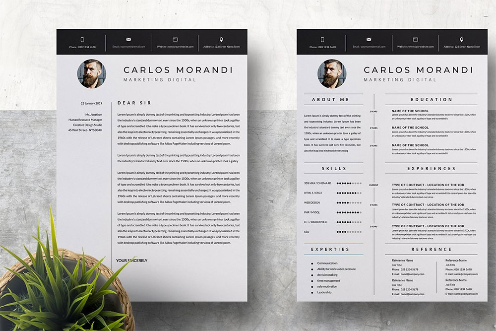 ¡Dé una impresión favorable a un empleador con un currículum listo para hacer brillar sus capacidades! Puede anunciarte perfectamente como marca y puede ser un buen reflejo de ti mismo. Aquí hay una plantilla de currículum vitae que definitivamente hará que su aburrido currículum cobre vida. Este paquete viene con un currículum listo para imprimir y una carta de presentación. Con esta plantilla, ya no tendrá que pasar por la carga de planificar su diseño. Lo que debe hacer es preparar su contenido y completarlo en esta plantilla. Por lo tanto, en poco tiempo, puede terminar bien su currículum. Dispone de dos versiones de color alternativas con elementos de personalización rápida y sencilla. Está disponible en Adobe Photoshop, Illustrator, Indesign y MS Word, también conocido como Microsoft Word.